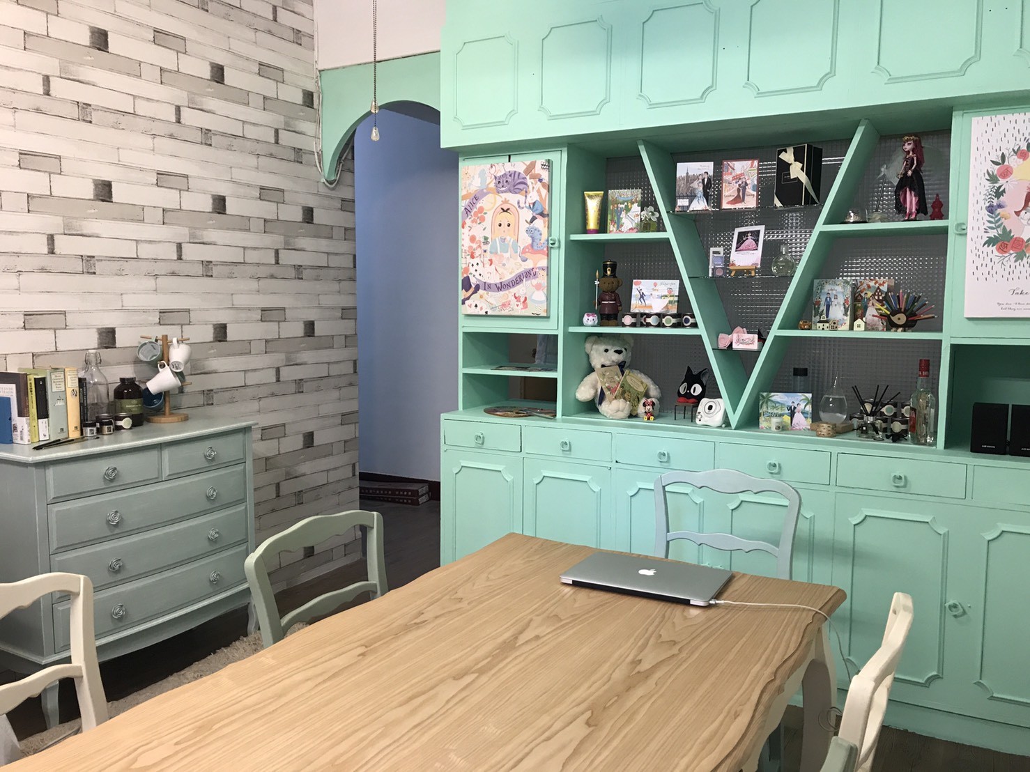 儘管老舊,但是客廳有一整片白色窗戶,陽光曬進來,心裡覺得暖。房子沒有附家俱也好,我可以佈置成自己的風格;大片木櫃子也好,重新油漆過後,就是完美的展示櫃。在腦子裡打了草圖,我對於具現化腦海裡的想像,有著高度的自信。於是立馬跟房東簽了約,重新粉刷、鋪地板、佈置傢俱、整頓工作室。