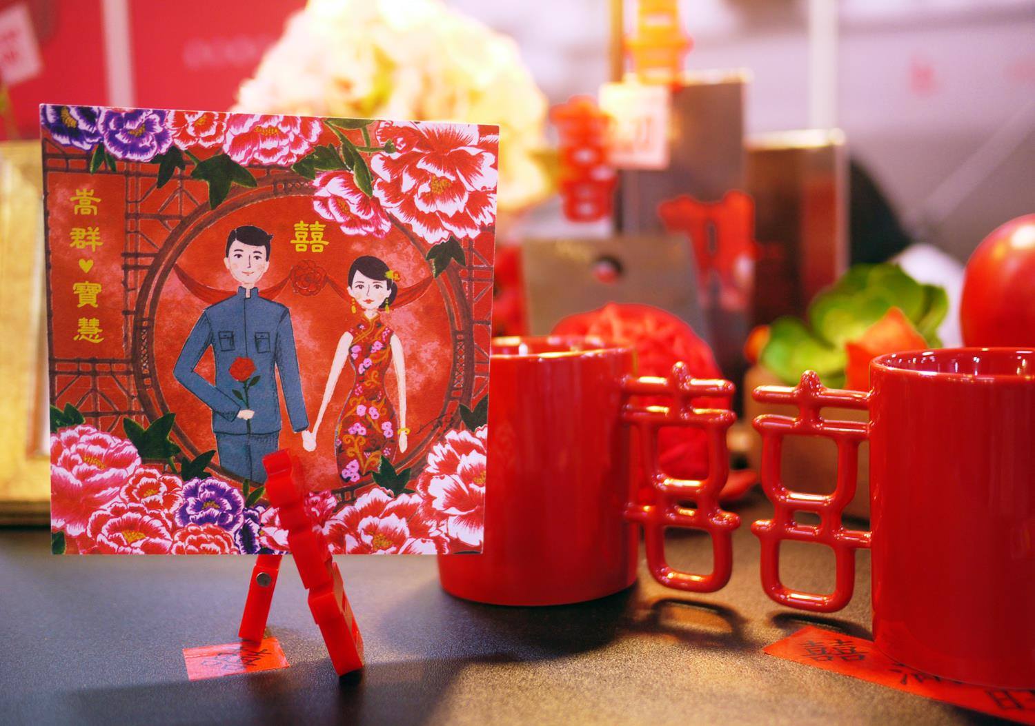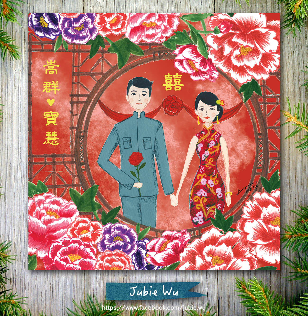 插畫搭配上濃濃的中國風,經典大方又不落俗套,好愛好愛!謝謝可愛的客戶寶兒一直的支持和貼心:)看到成品的那一刻,我們都開心的尖叫了!願妳不管面對怎麼樣的難關,都能過關斬將,一直一直幸福下去。