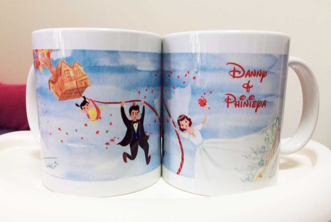 這份喜帖的意象讓新人很喜歡,不多做點週邊小物會讓人日思夜想睡不著啊!因此新人加購了馬克杯。每一個晨昏,一杯咖啡一杯可可,就是想一起品嚐幸福的滋味。