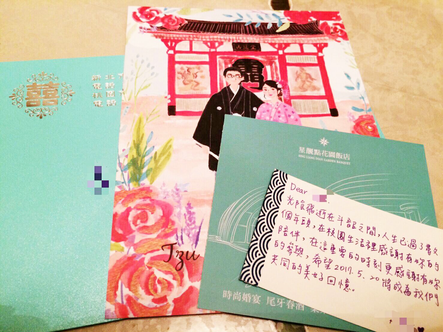 婚禮前一個月,開始將喜帖分送或寄出給親友,親友收到後都還特地告訴我們這是他/她收過最特別的喜帖了!都說會好好的收藏這份喜帖!更有朋友說看到這份喜帖好想再結一次婚喔!謝謝Jubie對我們喜帖的用心付出,因為有妳的設計,讓我們婚禮更增添許多回憶。