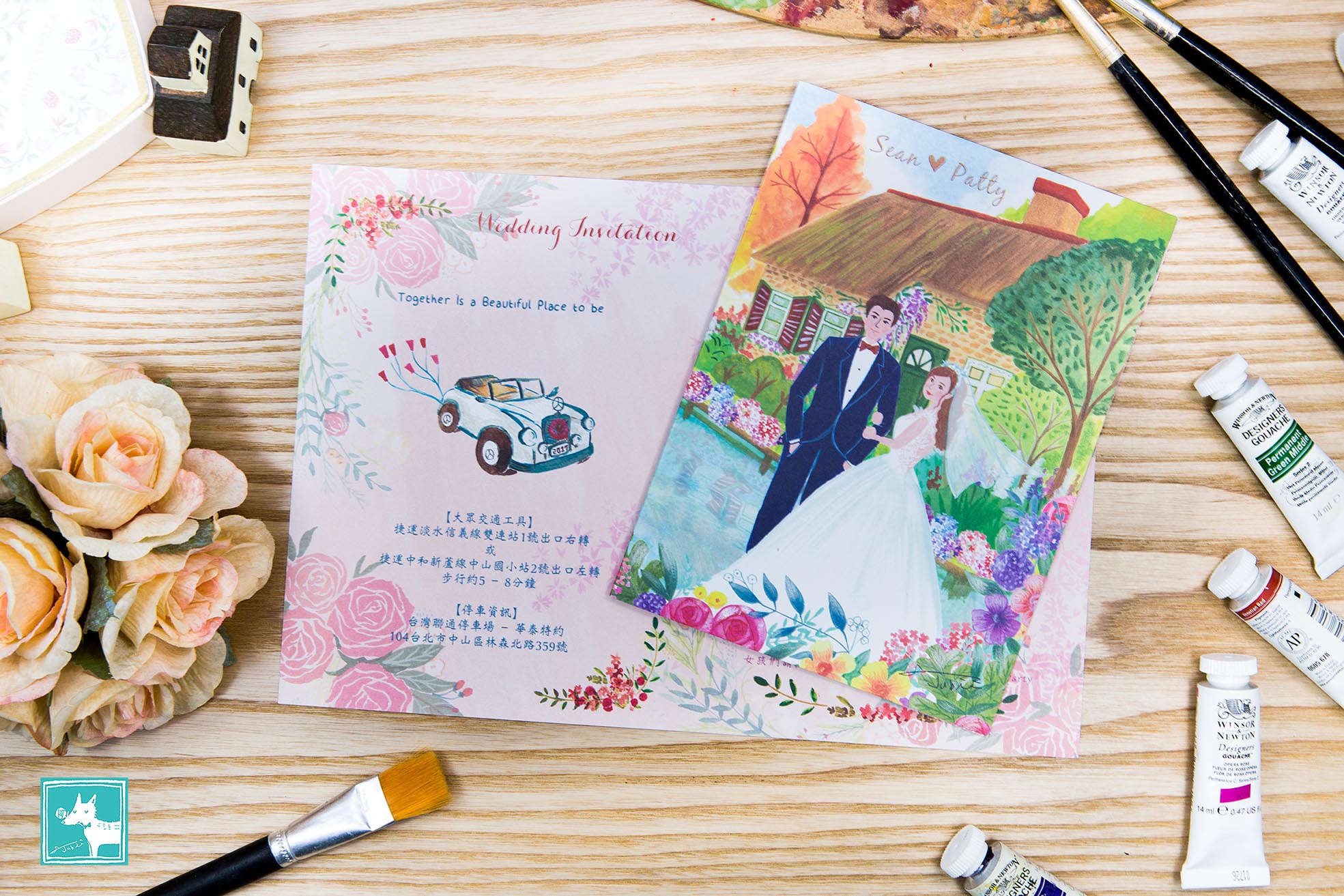 Jubie的手繪喜帖就是要美到新人的心坎裡,完全呈現他們記憶中的美景!新人也以藝術品來稱讚Jubie的作品呢,這樣的默契和讚美也是甜進Jubie的心了!